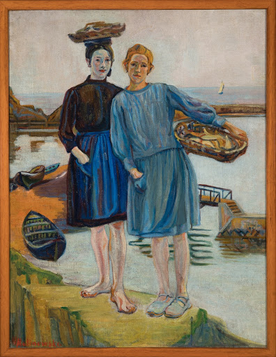 Se trata de Victoria Malinowska, pintora de origen polaco asentada durante esos años en París y que posteriormente, al comenzar la Primera Guerra mundial, hubo de trasladarse a España donde entraría a formar parte del mundo artístico de esta nación, exponiendo sus obras con frecuencia tanto en Madrid como en el País Vasco por el que sentía una especial atracción qué se refleja en muchas de sus obras. Aquí os traigo la titulada Pequeñas pescadoras en Ondarroa del año 1918, año en el que se documenta una exposición en el Círculo de Bellas Artes de la capital española. Al año siguiente tiene lugar una magna presentación de sus obras, más de 140, en el Ministerio de Estado donde acuden personalidades de la política, la nobleza y la élite artística española.